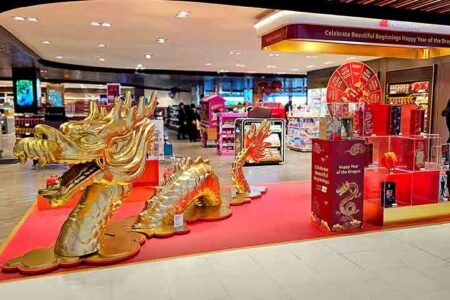 Art & Soul, based out of Sydney, is a designer-manufacturer of custom brand and retailer displays, props, and fixtures. The company has done it again with a beautiful retail Popup install at the Heinemann Duty Free store at Sydney airport. It’s the year of the Snake coming up in the Chinese Lunar calendar, so is wishes everyone a ‘Gong Xi Fa Cai’! As part of the installation, Heinemann Duty Free Chinese New Year ‘Popup’ shop has been created at the airport. It has been conceived by Art & Soul, created and installed the striking Popup in preparation for the ‘Year of the Snake’.