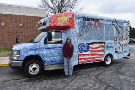 A panel of transit employees, graphic art professionals, and community leaders served as judges for the contest. Ava Passalacqua, a sophomore at Riverside High School, was this year’s first place winner for her bus design themed “We The People.” Her red, white and blue artwork, depicting American flags and bald eagle imagery, was transformed into a full bus wrap on one of Laketran’s propane-powered Dial-a-Ride vehicles that will be displayed for a year. Other contest standouts include second place winner Lailah Kerslake from iSchool Virtual Academy and third place winner Anna Sweet from iStem/Auburn Career Center. (PHOTO: WTT)