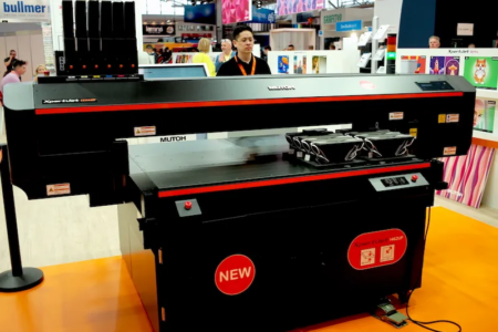 Mutoh has shown off its new small-format XpertJet 1462UF flatbed printer at FESPA 2023 Munich. Like its siblings, the XPJ 661 and 461UF models, the new Mutoh flatbed is mainly aimed at the industrial print market. This represents an expansion of Mutoh’s existing range of A2+ and A3+ table top printers and has a bed of 1470 x 740 mm, which roughly equates to A1+ size. It’s fitted with two piezo-electric printheads mounted in a staggered formation, which allows for bi-directional printing to maintain the print speed.